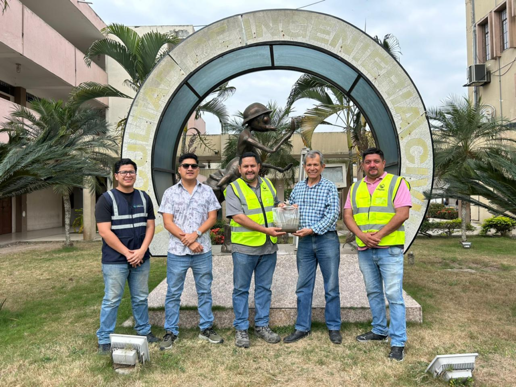 La muestra fue entregada al Coordinador de la Carrera de Ingenier铆a Ambiental, Ing. Carlos Loor Loor, y al Docente Investigador, Ing. Luis Vargas Collaguazo, quienes liderar谩n el proceso anal铆tico desde su campo de conocimiento, aportando desde la academia al fortalecimiento de la gesti贸n ambiental y operativa de la planta.